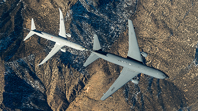 The KC-46A delivers more fuel at all ranges and from shorter runways than the KC-135 aircraft it’s replacing — while utilizing less ramp space than competing tankers — ensuring mission reach from forward and austere airfields.
